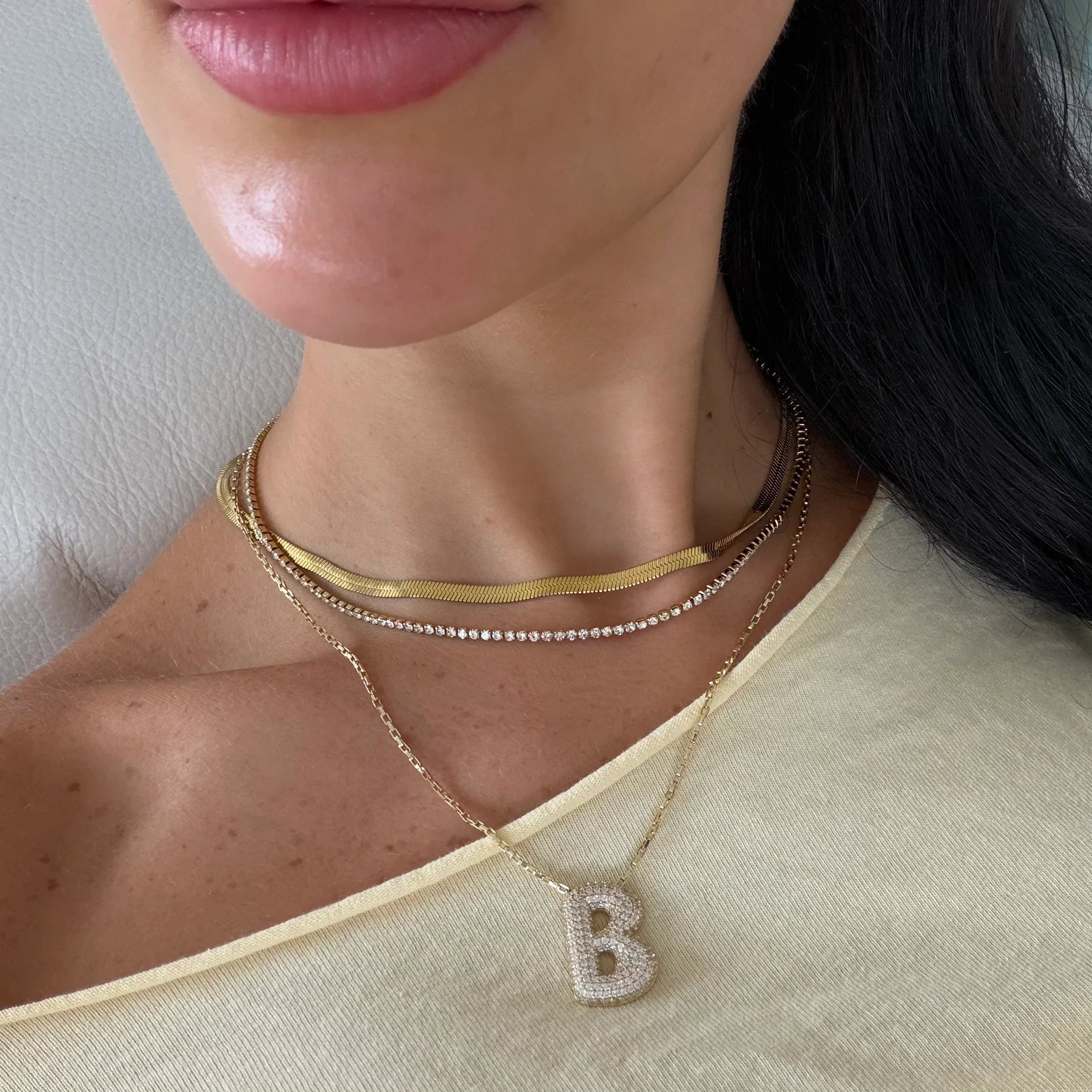 Make a statement with our Adore Me Necklace. This glamorous bubble initial pendant is fully covered in pavé CZ stones, giving you maximum sparkle and shine. Perfect for elevating any outfit, this personalized pavé letter necklace lets you show off your unique style and stand out from the crowd. A must-have trendy jewelry piece for anyone who loves chic, customizable accessories.